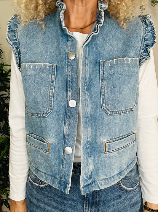 Sold out Sold outDenim Frill Waistcoat - Size 10Vendor:Seventy + MochiRegular price £65.00 GBPRegular priceUnit price per-