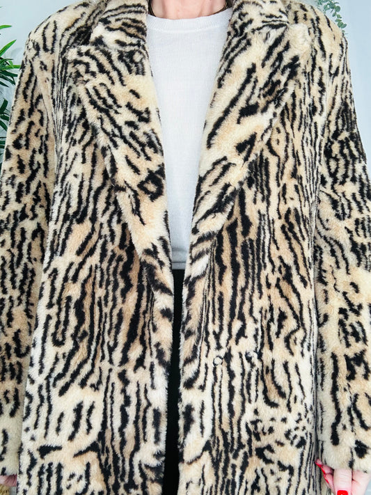 Faux Fur Animal Print Coat - Size 42