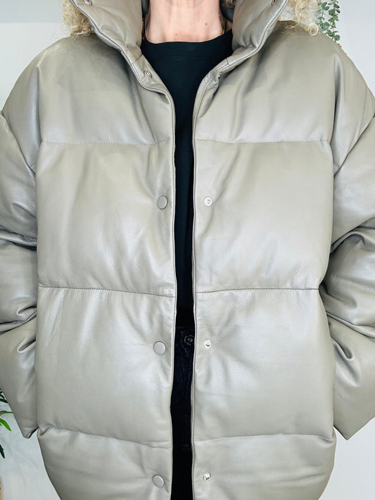 Leather Puffer Jacket - Size S