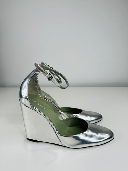 Metallic Leather Wedges - Size 39