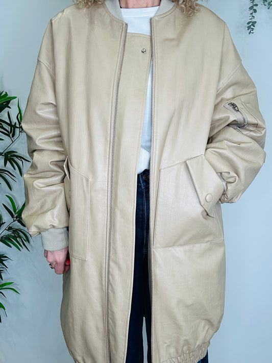 Faux Leather Bomber Jacket - Size M/L
