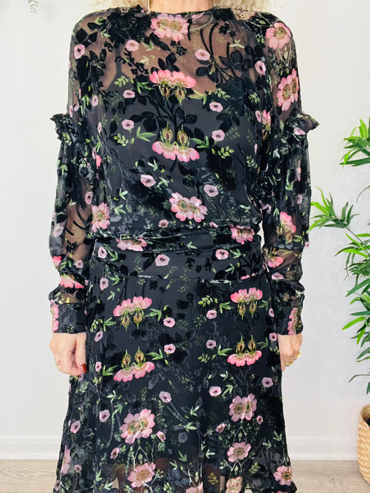 Velvet Floral Midi Dress - Size XS