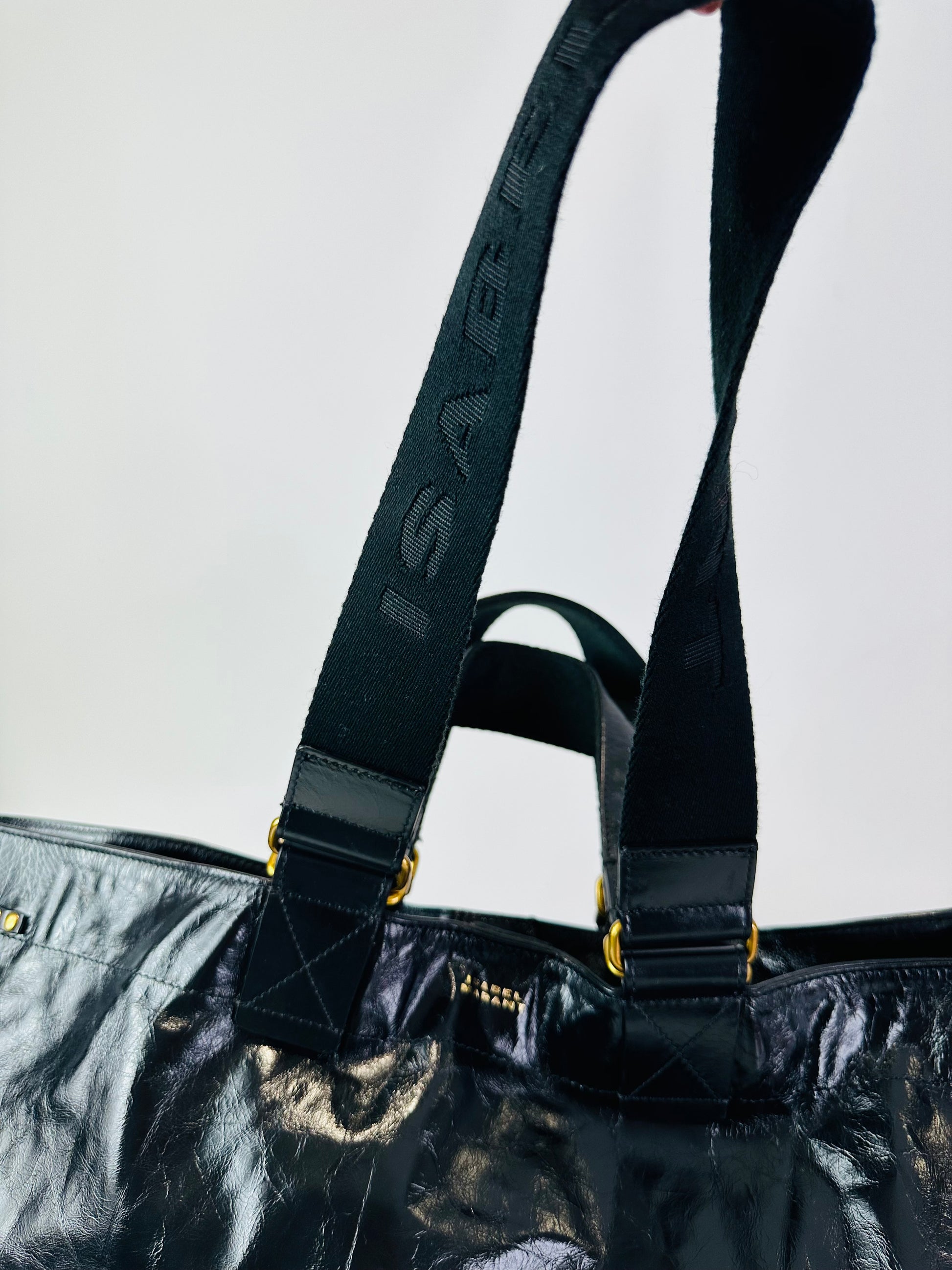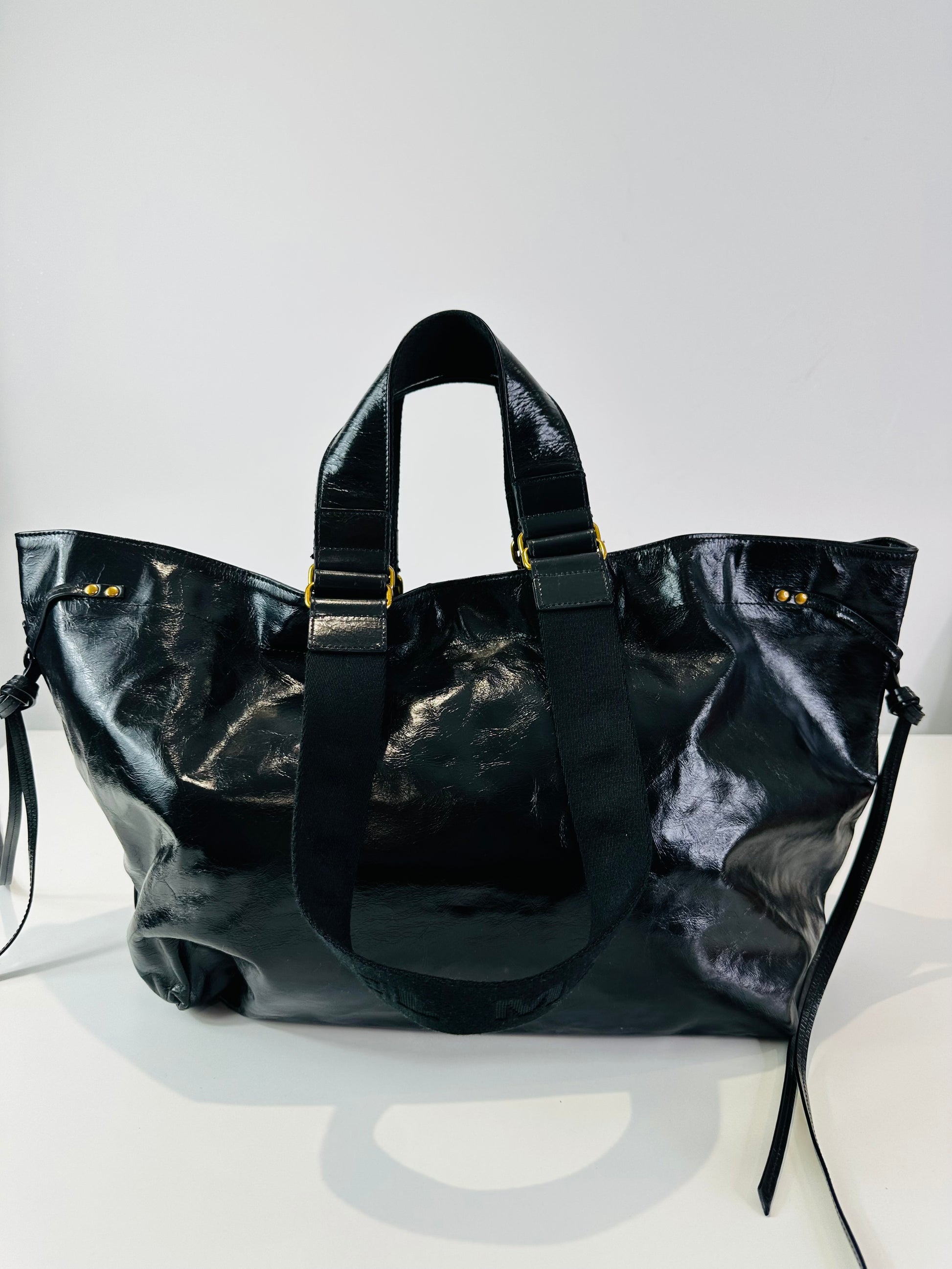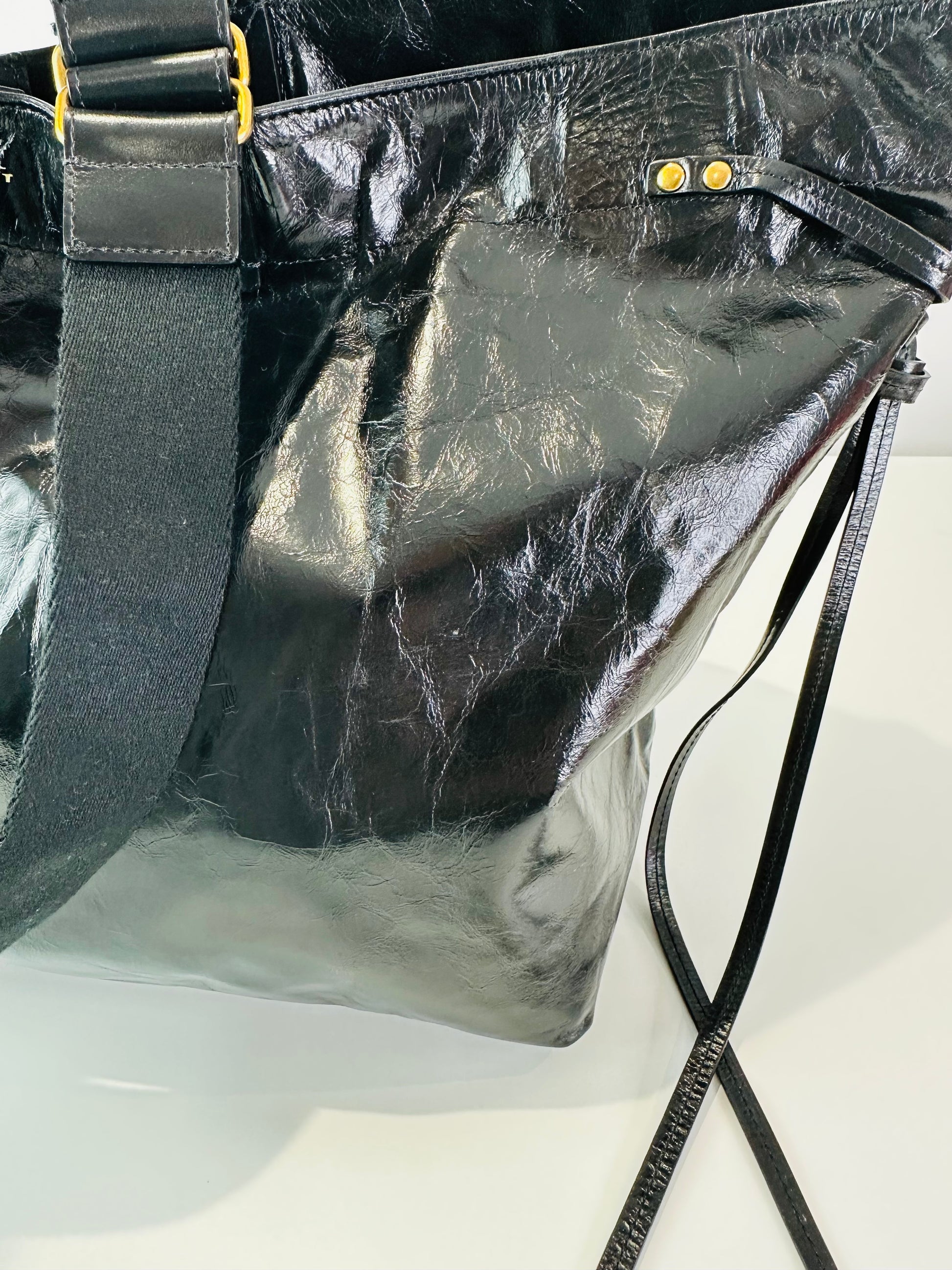 - High shine crinkle leather