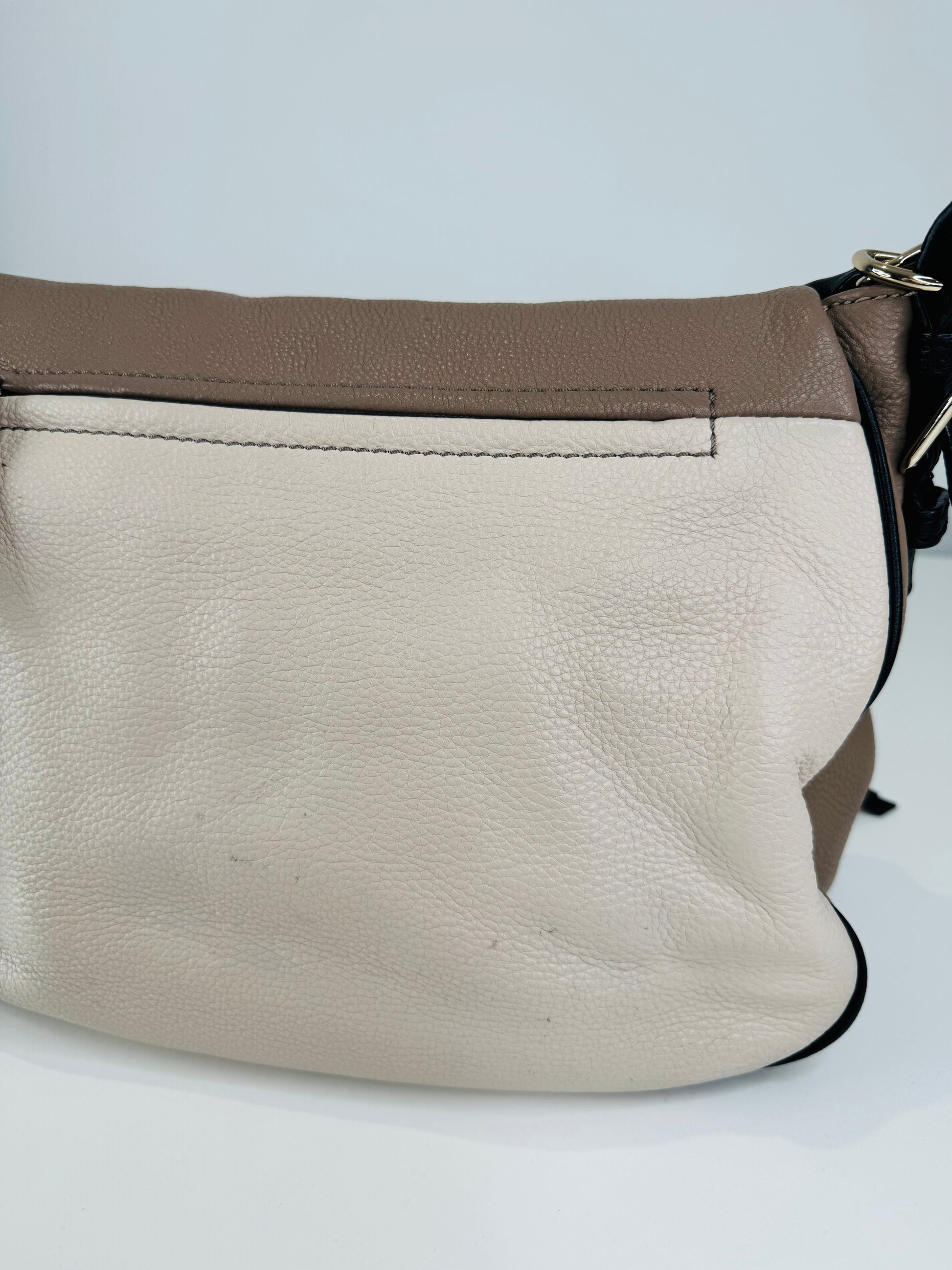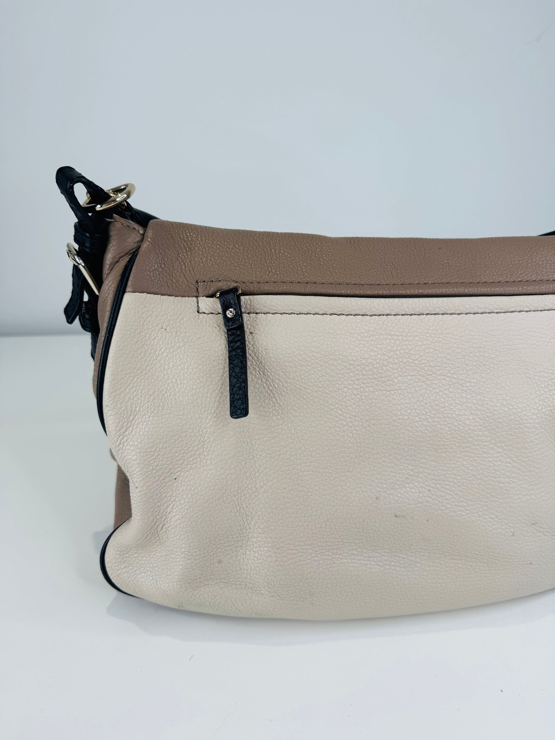 - Fold over flap with zip compartment