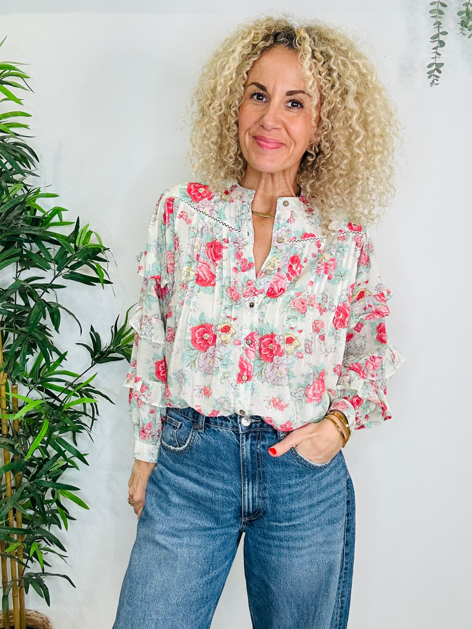 Maison Hotel, Floral blouse, S, Multi