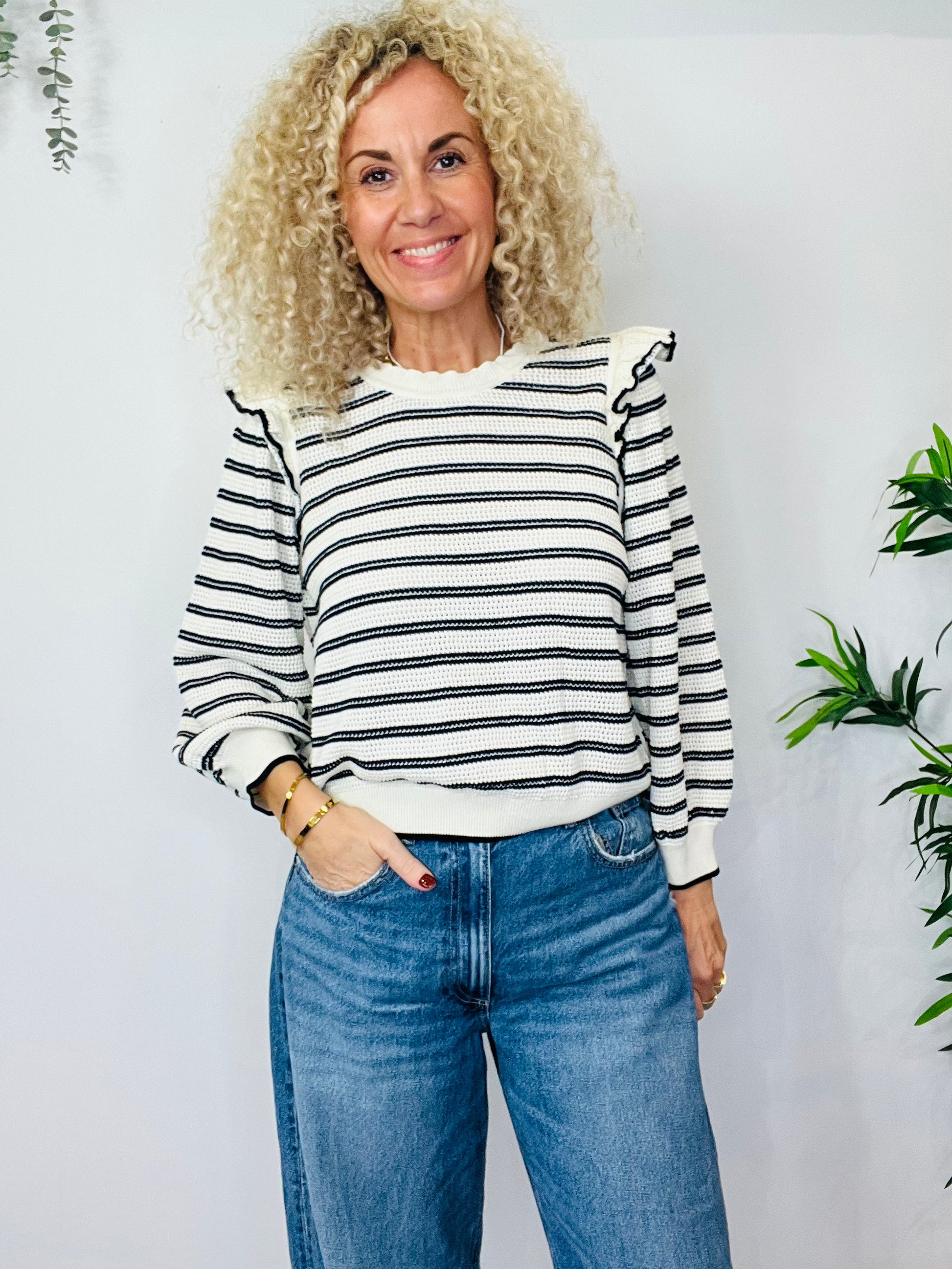 Striped Frill Jumper - Size L