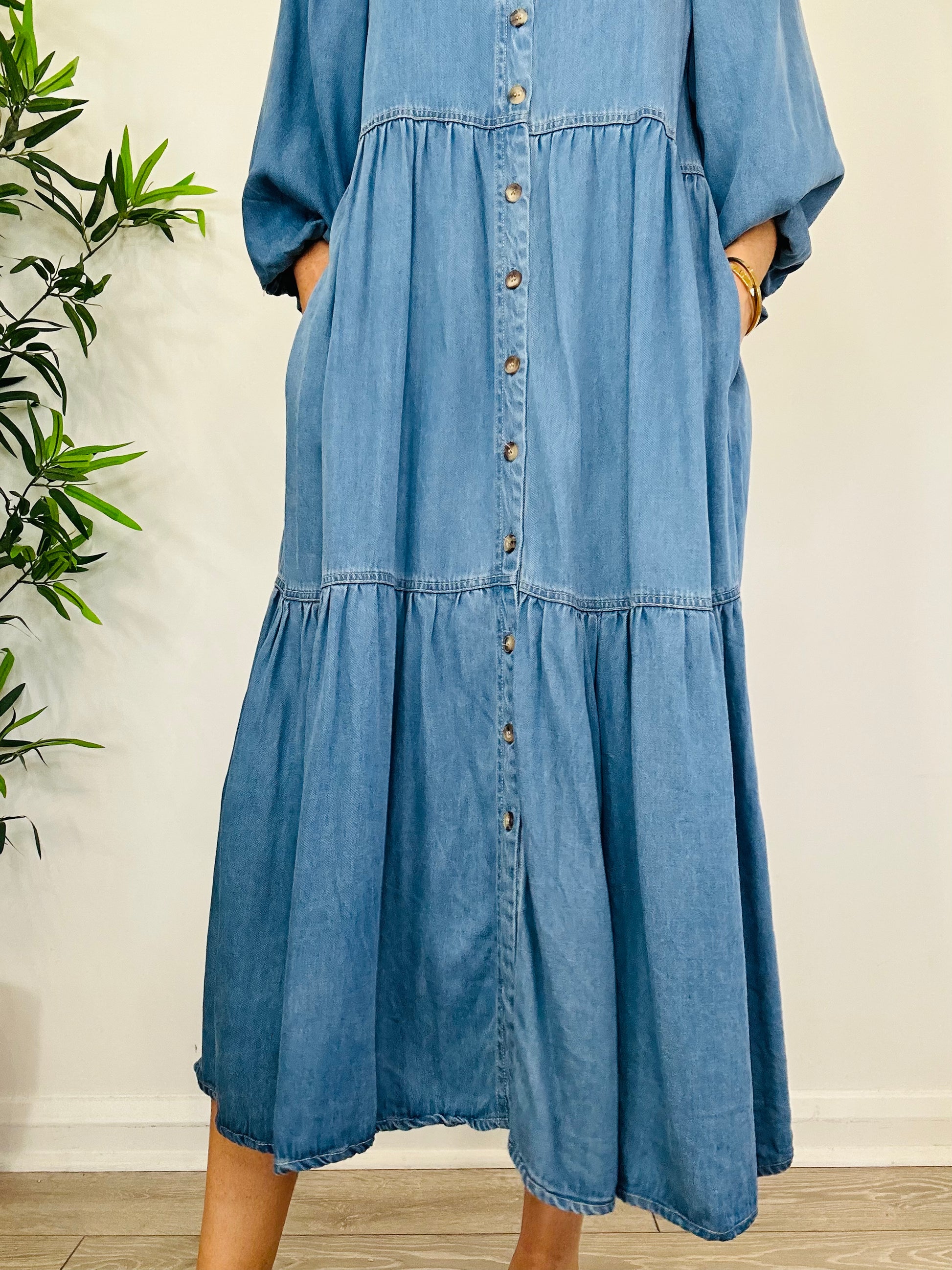 Tiered Denim Dress - Size 12