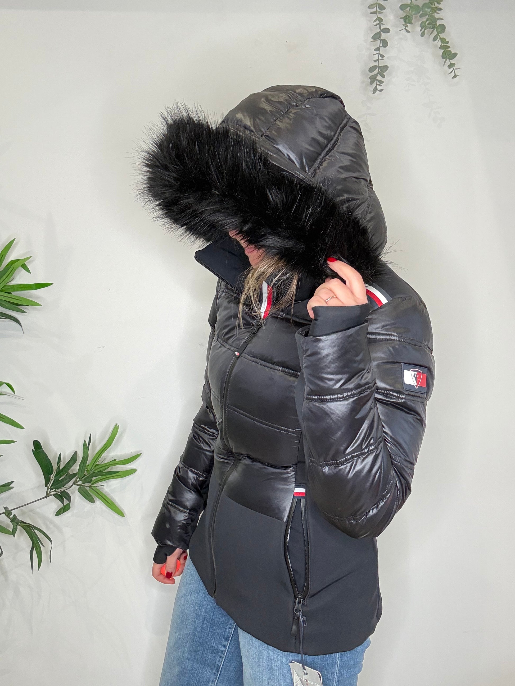 - Hood with removable faux fur trim